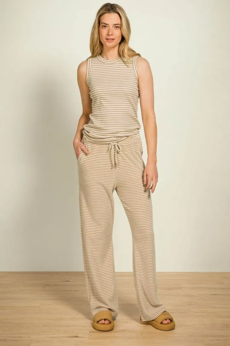 Die Britta Lange Hose vereint ultimativen Komfort mit elegantem Stil. Diese Hose besteht aus weichem Material, das sie wunderbar dehnbar und angenehm zu tragen macht. Der elastische Bund und die gestreifte Jersey-Kordel sorgen für eine perfekte Passform, während die geraden Beine und der Bootleg-Look eine elegante Ausstrahlung verleihen. Das Little Sumo Stripe Design mit subtilen, tonalen Streifen verleiht einen spielerischen und stilvollen Akzent.