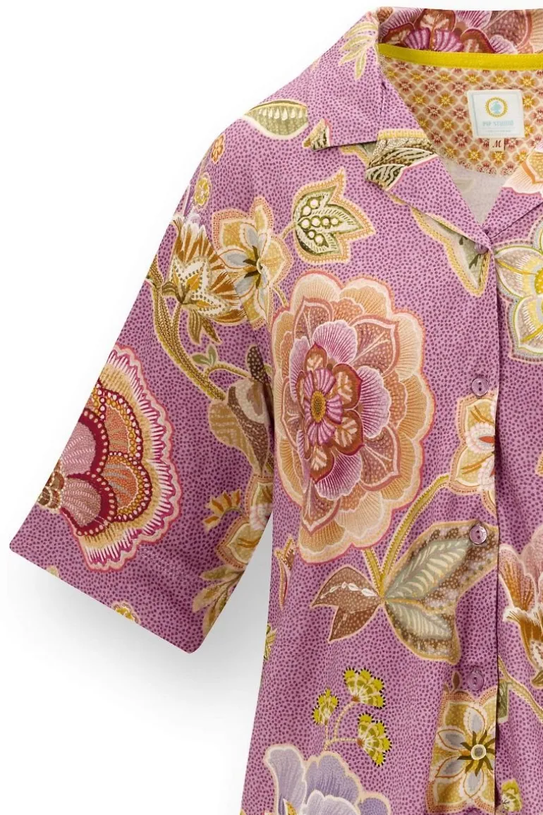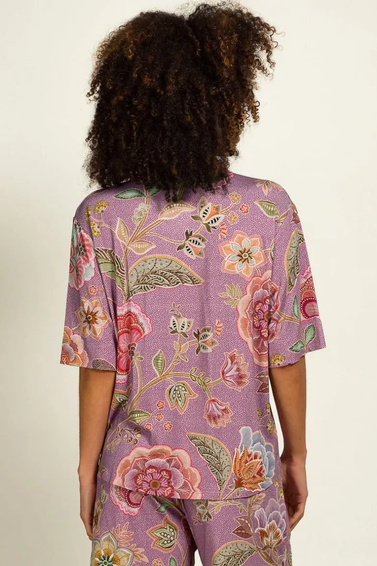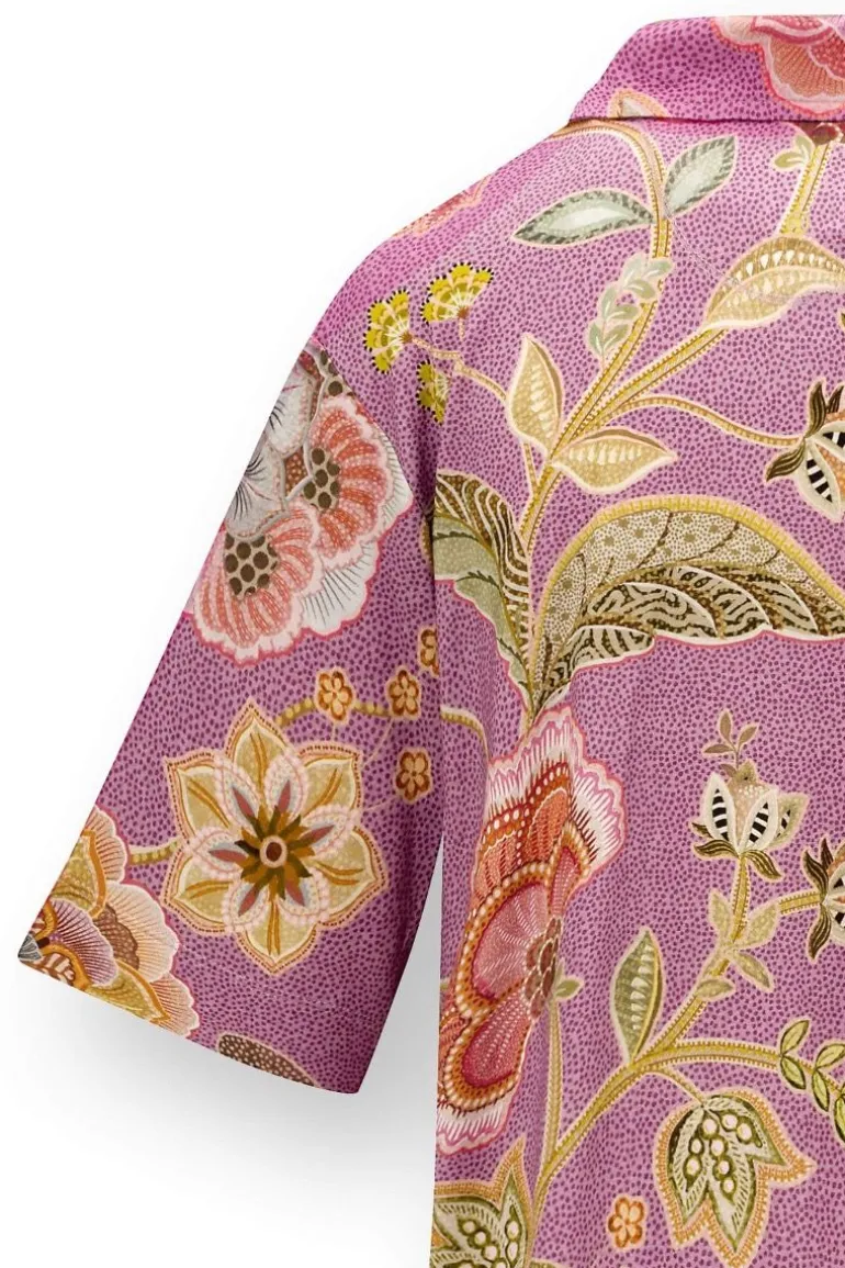 Das Flora Top Kurze Ärmeln Matata Lila ist ein elegantes Oberteil, das deine Garderobe aufpeppt. Das Top hat kurze Ärmel, einen Ausschnittkragen und einen oversized Schnitt. Zudem ist dieses Top aus einem glänzenden, gewebten Viskosestoff gefertigt, der sich wunderbar auf der top anfühlt. Bequem und angenehm zu tragen. Das Matata-Muster zeigt große Blumen und Blätter, inspiriert von afrikanischen Waxprints. Die Blumen sind mit gepunkteten Kanten, Streifen und anderen verspielten Details verziert. Der Hintergrund hat ein dezentes Pünktchenmuster.