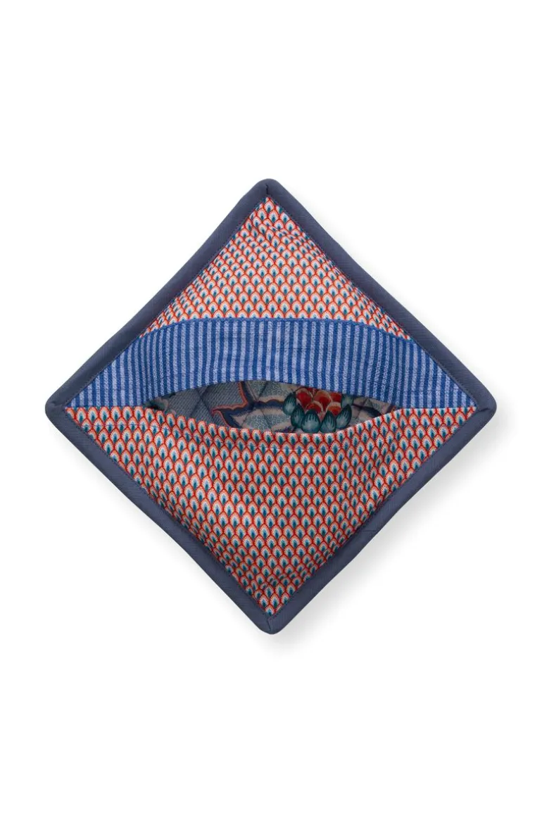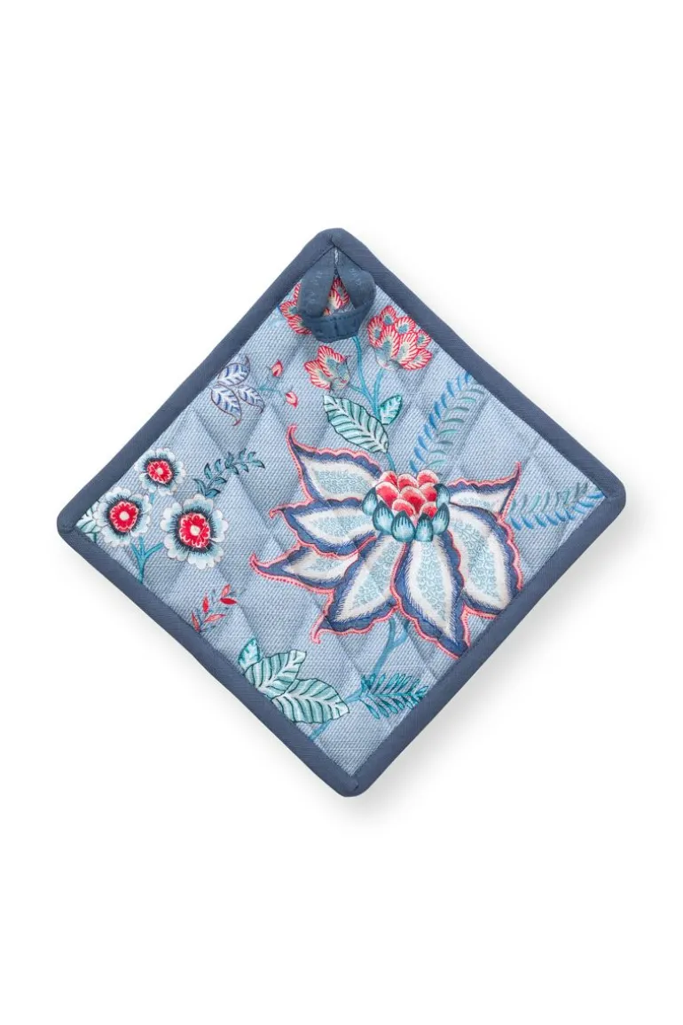 Ergänzen Sie Ihre Küchentextilien um diesen Flower Festival Topflappen. Dieser Topflappen hat einen blauen Hintergrund und ist mit dem eleganten Flower Festival Design dekoriert. Dieses reiche Blumenmuster besteht aus einer Variation fantasievoller Chintzblumen in Rot und Rosa mit hellblauen und grünen Blättern. Die spielerisch platzierten Blütenzweige mit aufwendig verzierten Blüten und Blättern machen dieses raffinierte Design zu einem besonders reichen Erlebnis.
