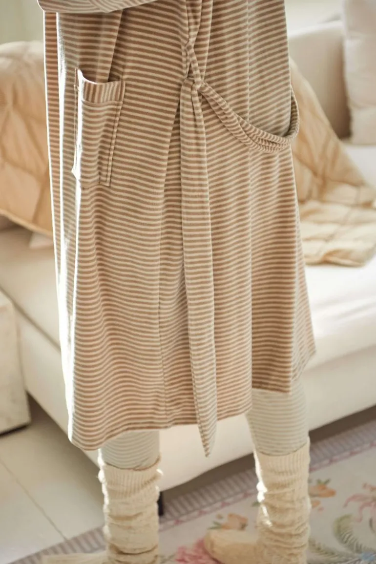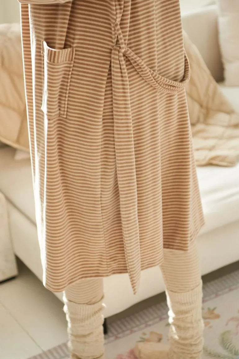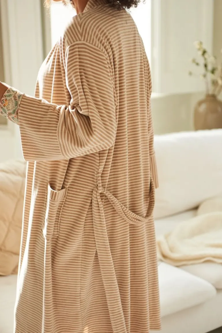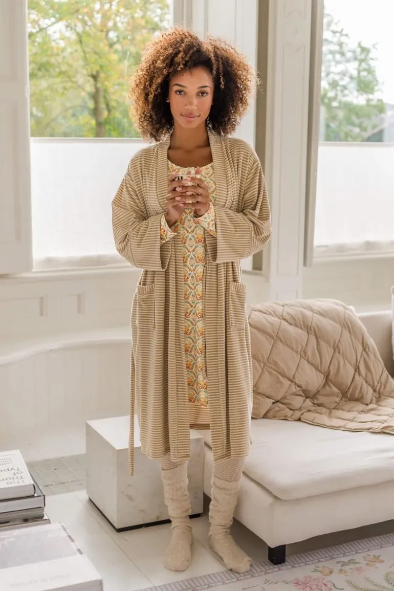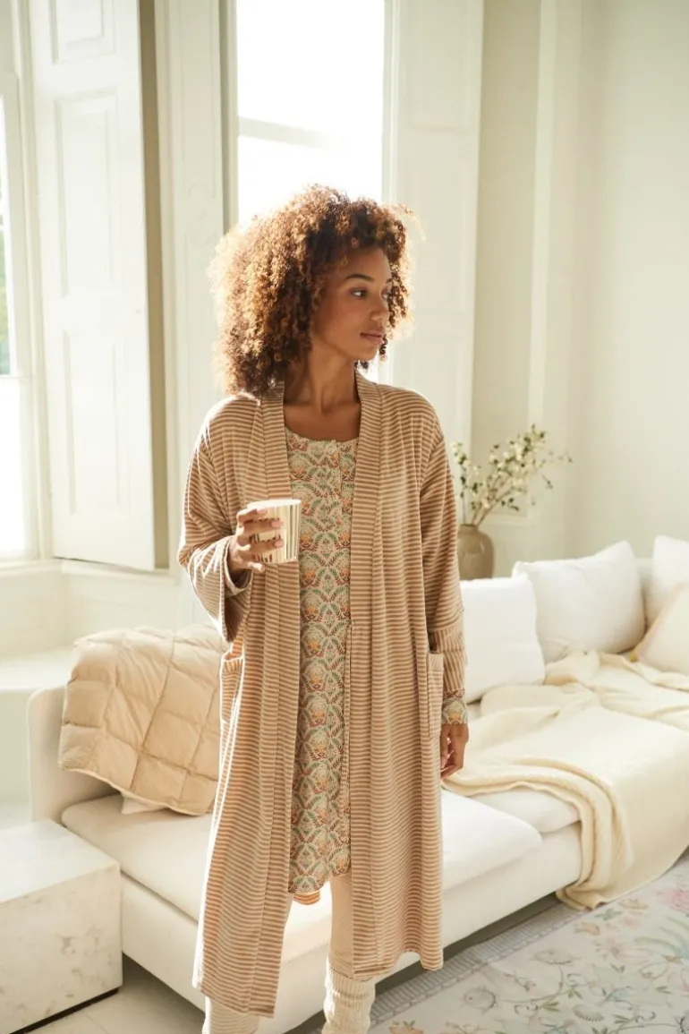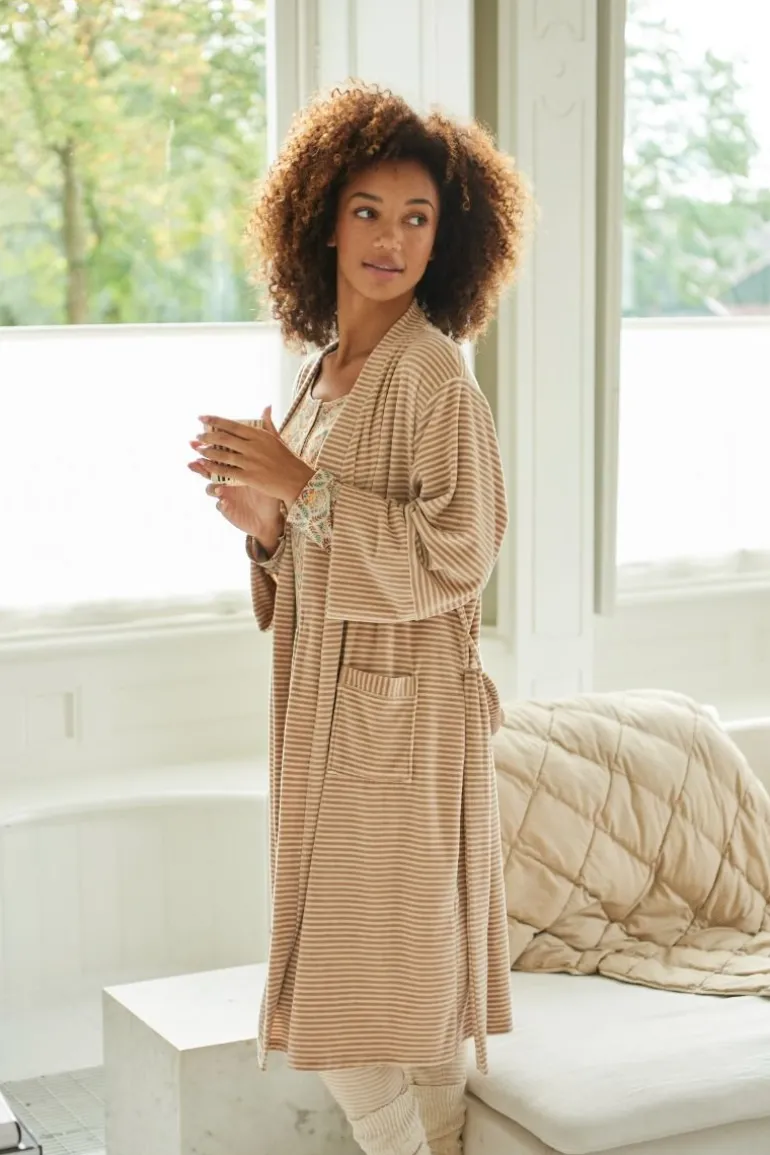 Der Naomi Kimono Little Sumo Stripe Sand ist der perfekte Kimono in einer sanften Farbe. Dieser Kimono mit langen, locker fallenden Ärmeln ist aus wunderbar weicher Stretch-Viskose und Samt gefertigt, was ein üppiges Gefühl bietet. Das Little Sumo Stripe Dessin enthält subtile tonale Streifen, die dem Oberteil einen spielerischen und eleganten Charakter verleihen. Der passende Gürtel sorgt für eine perfekte Passform und einen zusätzlichen Hauch von Stil.