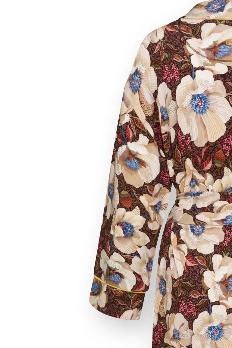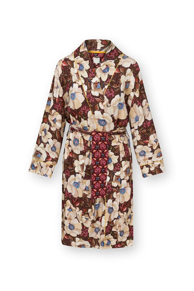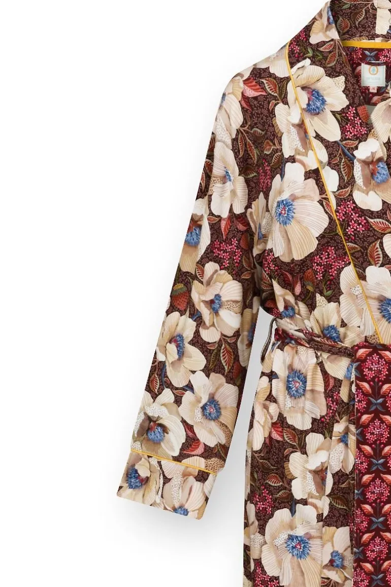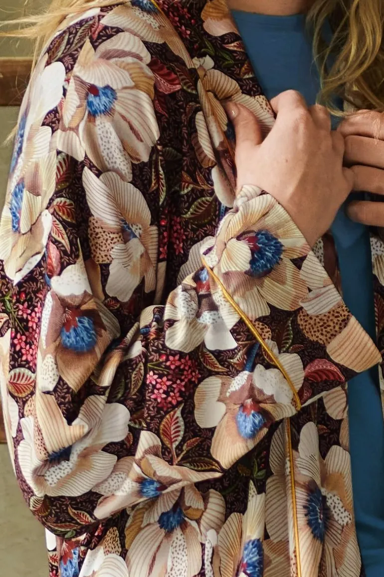 Der Nisha Kimono Rosita Braun ist eine elegante und komfortable Wahl für jeden Tag. Dieser Kimono mit langen, passenden Ärmeln ist aus wunderbar weicher Stretch-Viskose gefertigt und wird mit einem passenden Gürtel für eine perfekte Passform geliefert. Das Rosita Dessin zeigt große, handgezeichnete Mohnblumen mit kleinen Blütentrauben im Hintergrund, was einen wunderschönen und raffinierten Effekt ergibt.
