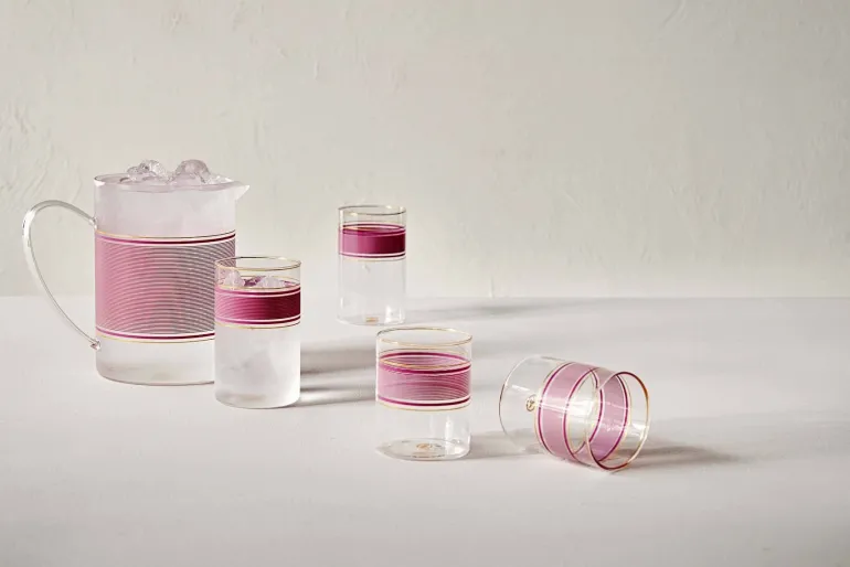 Teil der Pip Chique-Kollektion, unsere gestreifte Karaffe in rosa. Perfekt, um Ihrem Tisch einen frischen Look zu verleihen und auch in grün erhältlich. Kombinieren Sie diese Karaffe mit den passenden Gläsern oder mit anderen Artikeln unserer Pip Chique-Kollektion für ein schönes Ergebnis.