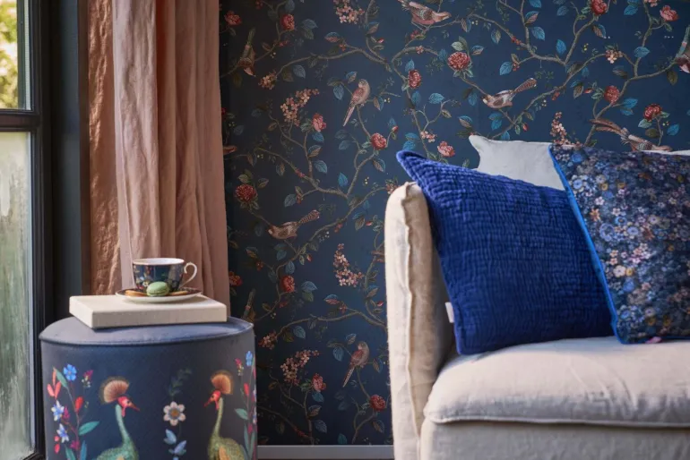 Gib deinem Zuhause ein zauberhaftes Makeover mit der wunderschönen Good Nightingale Tapete in der Farbe Dunkelblau. Für echte Vogelliebhaber ist die Kollektion Good Nightingale genau das Richtige! In diesem fröhlichen Muster mit Zweigen und Blumen sind allerlei einzigartige Vögel mit fantasievollem Gefieder aus Punkten und Streifen in satten Farben versteckt. Die subtilen Metallic-Effekte machen die Tapete zu einem echten Hingucker. Die Casa di Fiori Tapete ist in verschiedenen Farben erhältlich: Grün, Petrol, Ocker, Gebrochen Weiss, Rosa Mauve und Hellblau/Grau.
