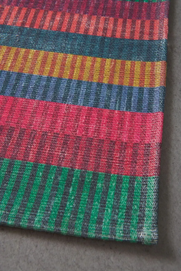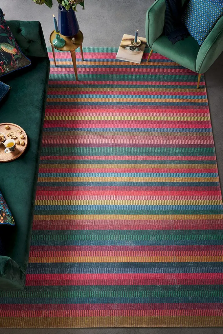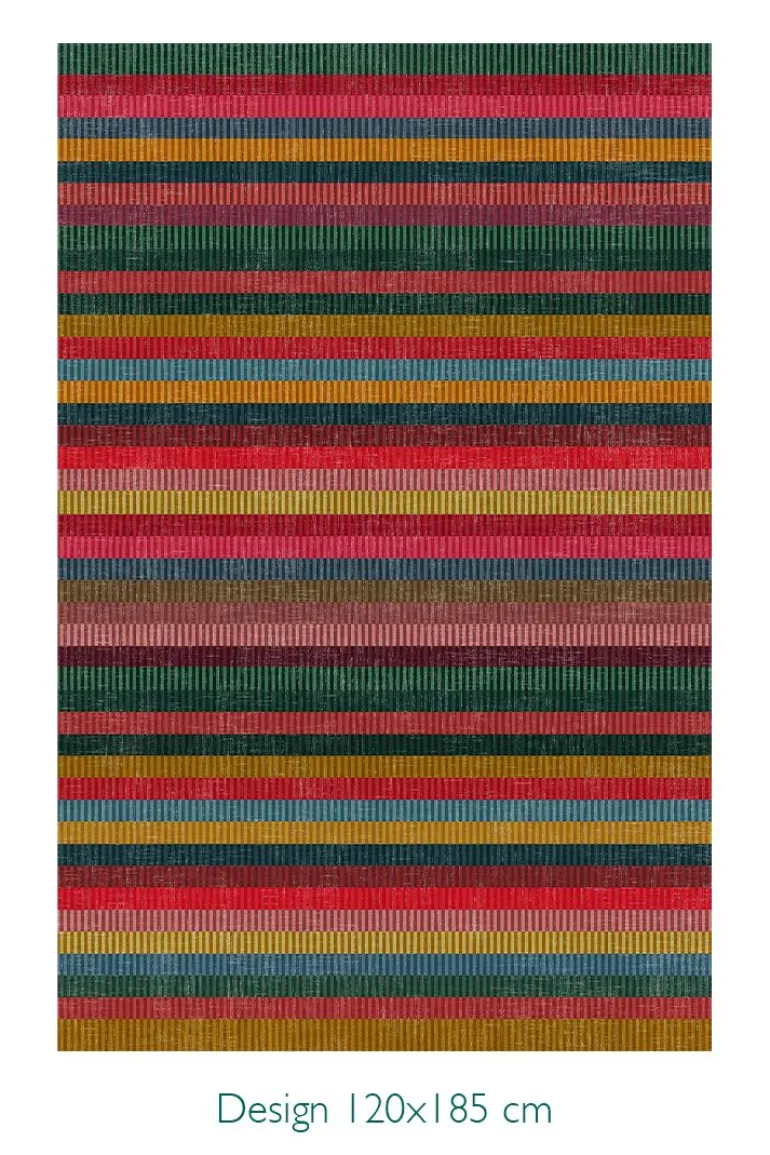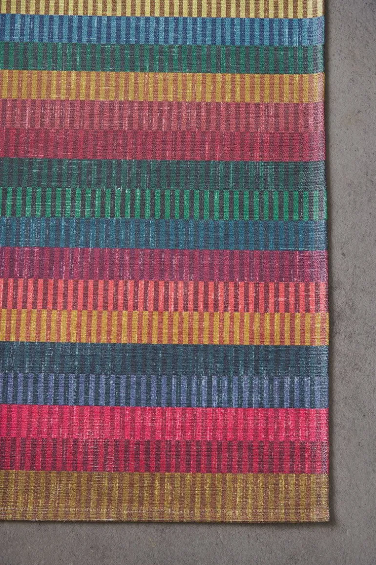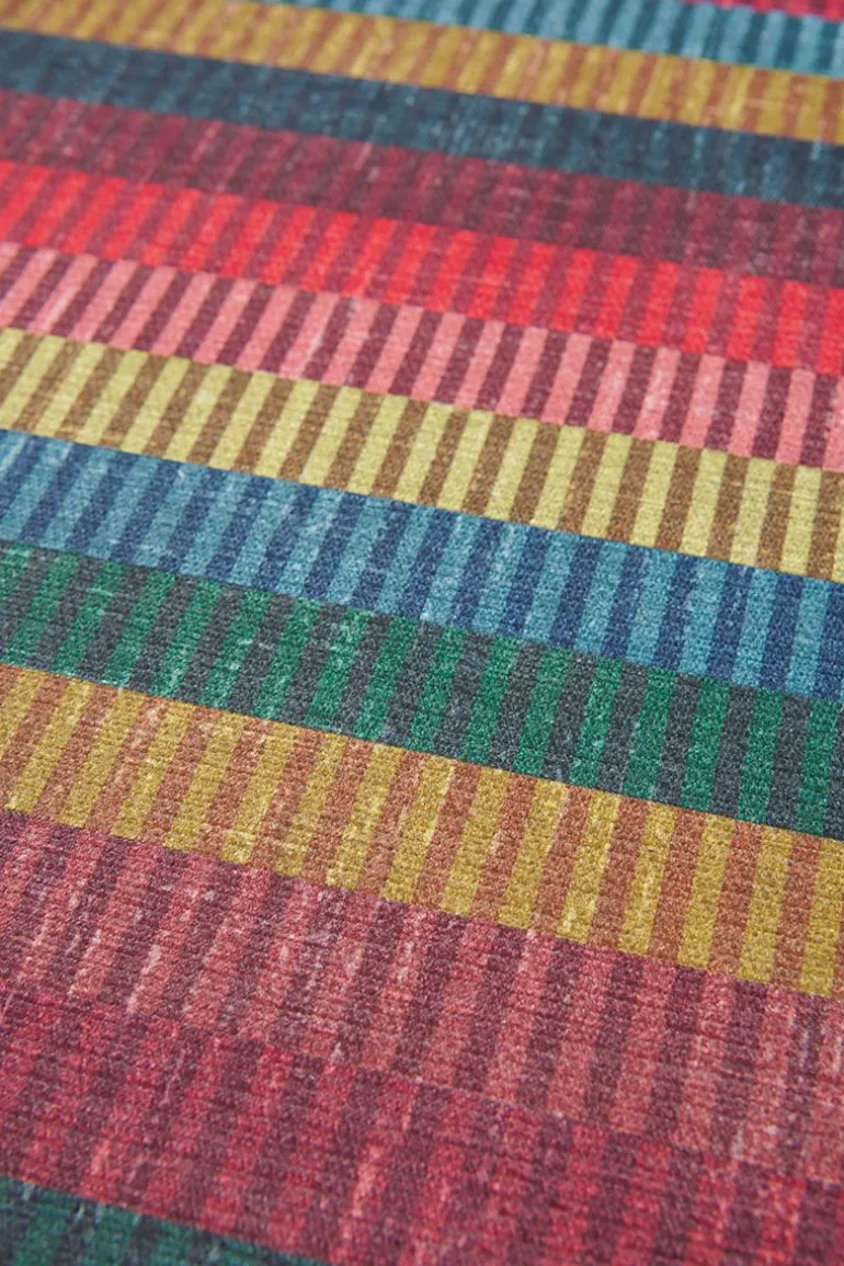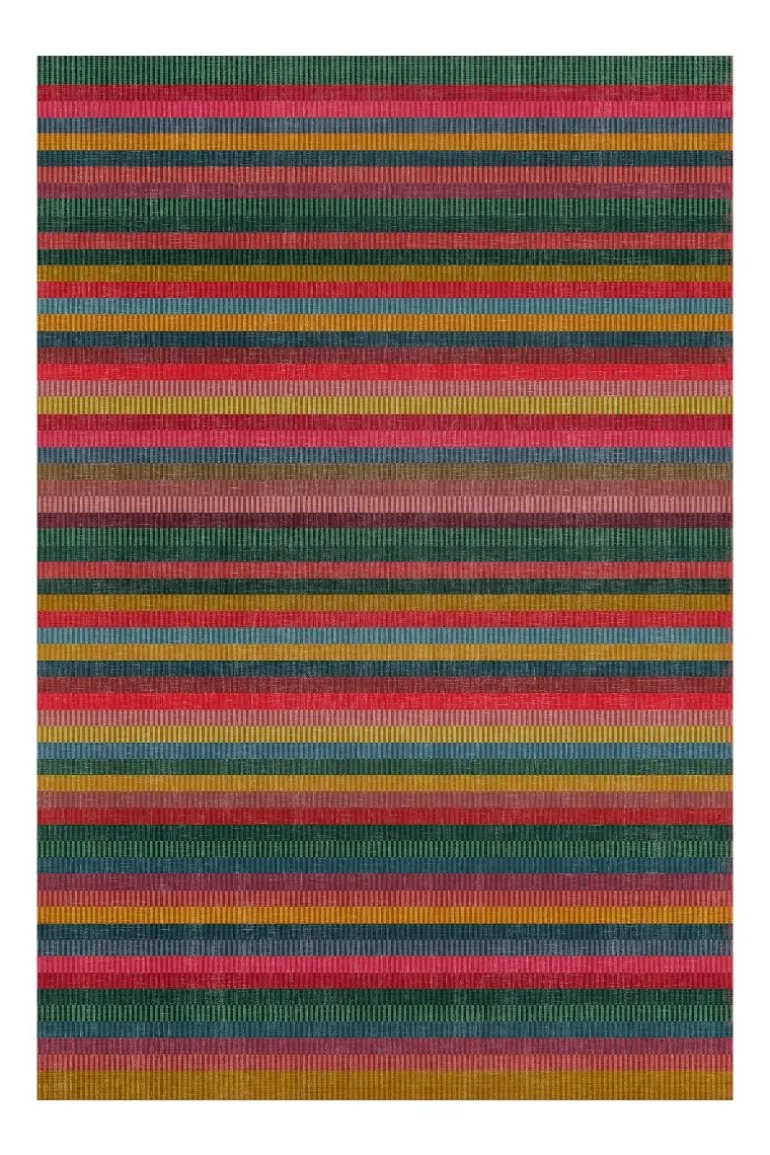 Bereichern Sie Ihr Wohnzimmer und wähnen Sie sich in einer Welt voller fröhlicher Farben mit dem mehrfarbigen Teppich Jacquard Stripe by Pip. Das Dessin besteht aus leuchtend grünen, blauen, gelben, roten und rosafarbenen Streifen, die horizontal miteinander verbunden sind. Verleihen Sie Ihrem Interieur einen farbenfrohen Twist mit diesem einzigartigen gestreiften Teppich. Der Teppich ist bedruckt und kann mit hübschen Wohnaccessoires kombiniert werden, um eine warme Atmosphäre in Ihrem Interieur zu schaffen. Dank seiner Farbvielfalt ist der Teppich nicht nur leicht zu kombinieren, sondern passt er außerdem hervorragend zum Teppichläufer Jacquard Stripe by Pip.