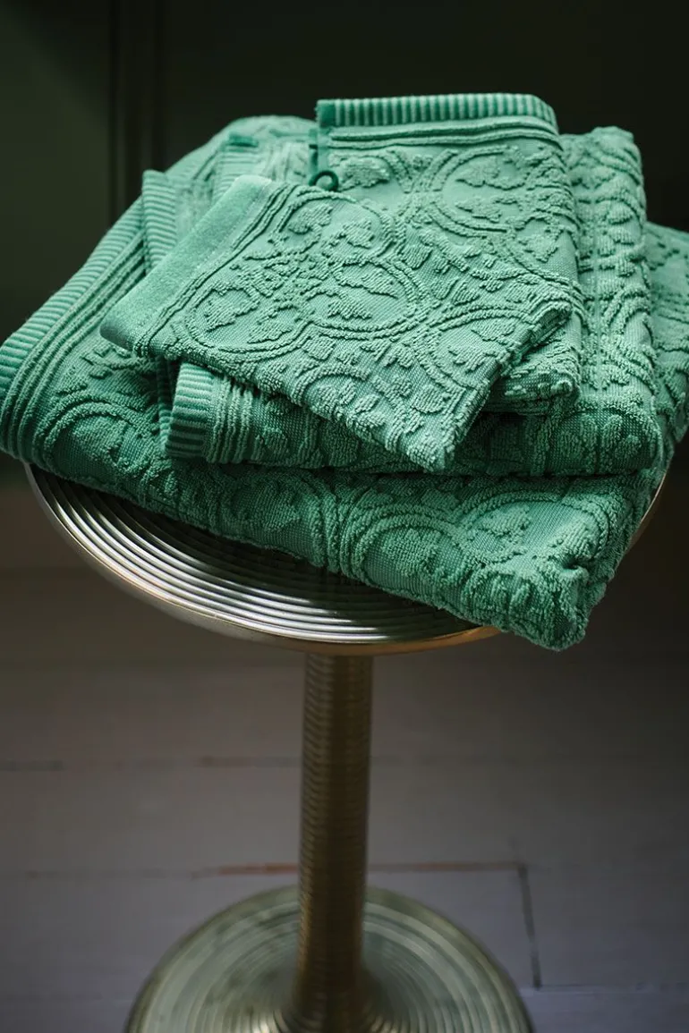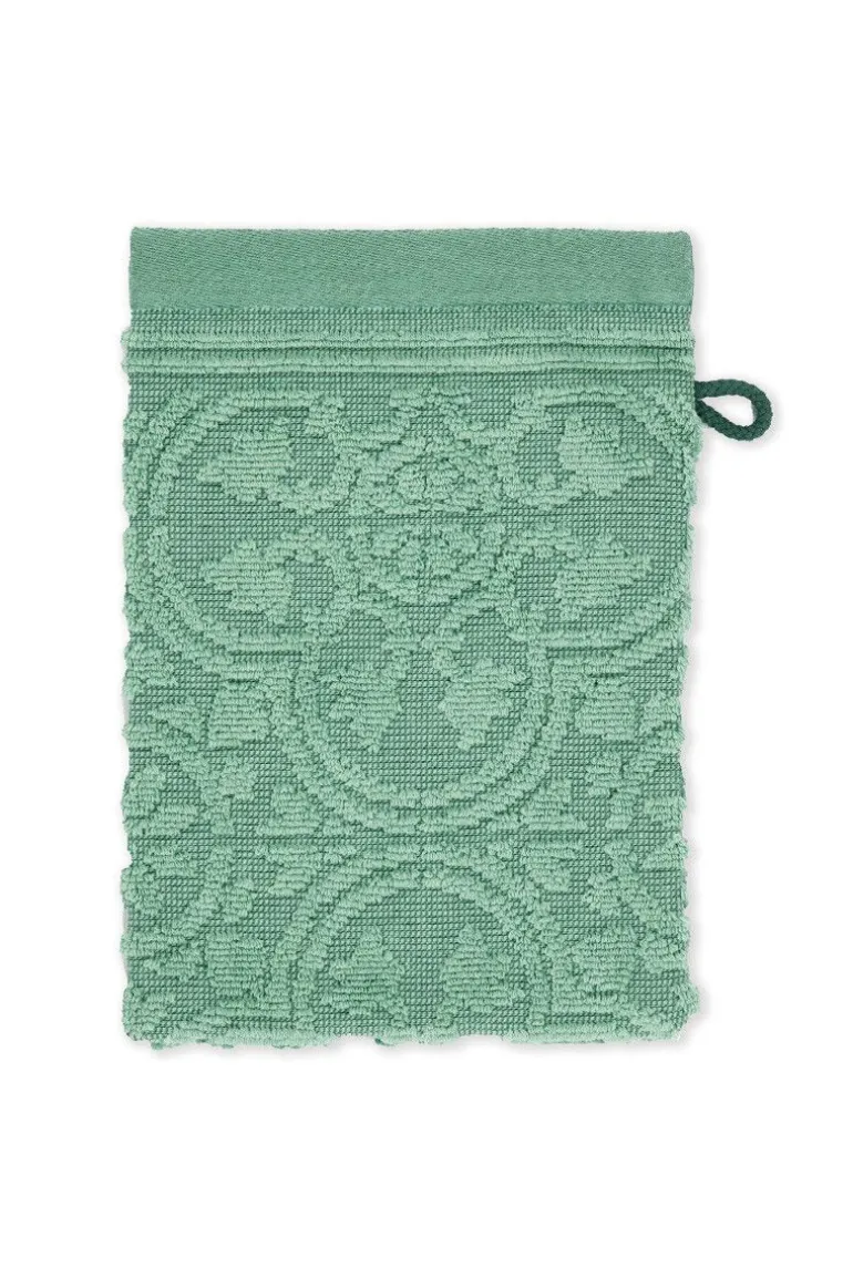 Dieses Set aus drei grünen Waschlappen stammt aus der Tile de Pip Kollektion. Die stilvolle Tile de Pip Jacquard-Frottee-Kollektion ist eine echte Bereicherung in jedem Badezimmer. Die Waschlappen haben ein tonal gewebtes Fliesenmotiv mit Hoch-Tief-Effekt. Vorder- und Rückseite haben ein Relief aus Frottee. Die Kanten sind mit einem eingewebten zweifarbigen Streifen verziert. Die Tile de Pip Waschlappen passen gut zu anderen Items aus dieser Kollektion, sodass ein schöner Kombinationseffekt in Ihrem Badezimmer entsteht.